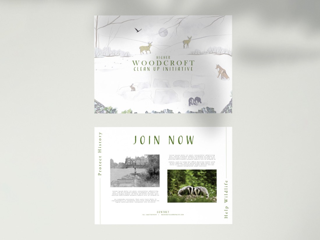 Following Annie’s feedback, I reflected on potential contexts for the design. Considering broader themes of place, time and regeneration, I thought that a local clean up initiative would be a meaningful real world application for the illustration as it acknowledges the social and ecological issue of pollution and threat to wildlife habitats as the importance of preserving and understanding local heritage. Although this concept was a rewarding solution, aesthetically I would have liked more time to develop a comprehensive campaign with additional graphic features such as logo marks and branding guidelines for a local group or organisation. Despite implementing a playful family/ child friendly typeface to balance the historical resonance of the original serif Baskerville type, I feel that the font pairing needs further consideration.