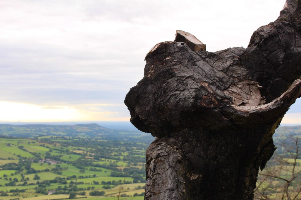 Being located in a rural area in the Staffordshire Moorlands, the natural ancient landscape inspired for me a plethora of emotions with conflicting patterns. For example, awe of the natural landscape was balanced by the misanthropy experienced considering the destructive impact of human behaviour, as seen in the devastating forest fire at The Roaches, a primitive natural beauty spot of gritstone boulders and forest, caused by a summer barbeque.
