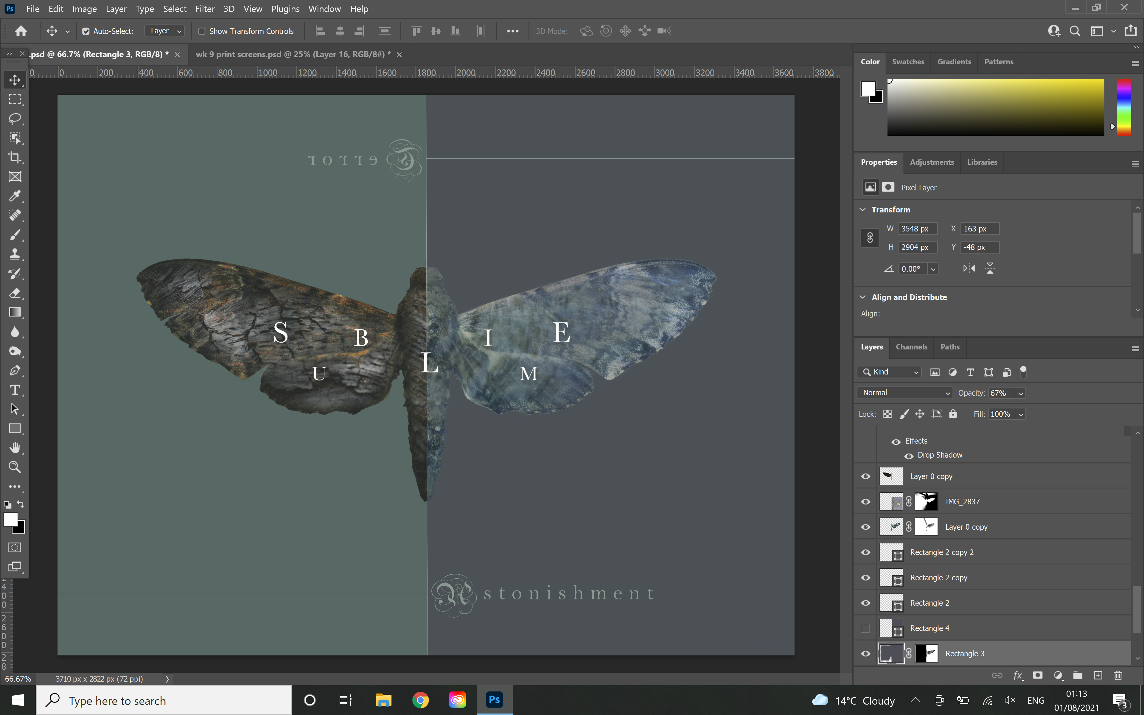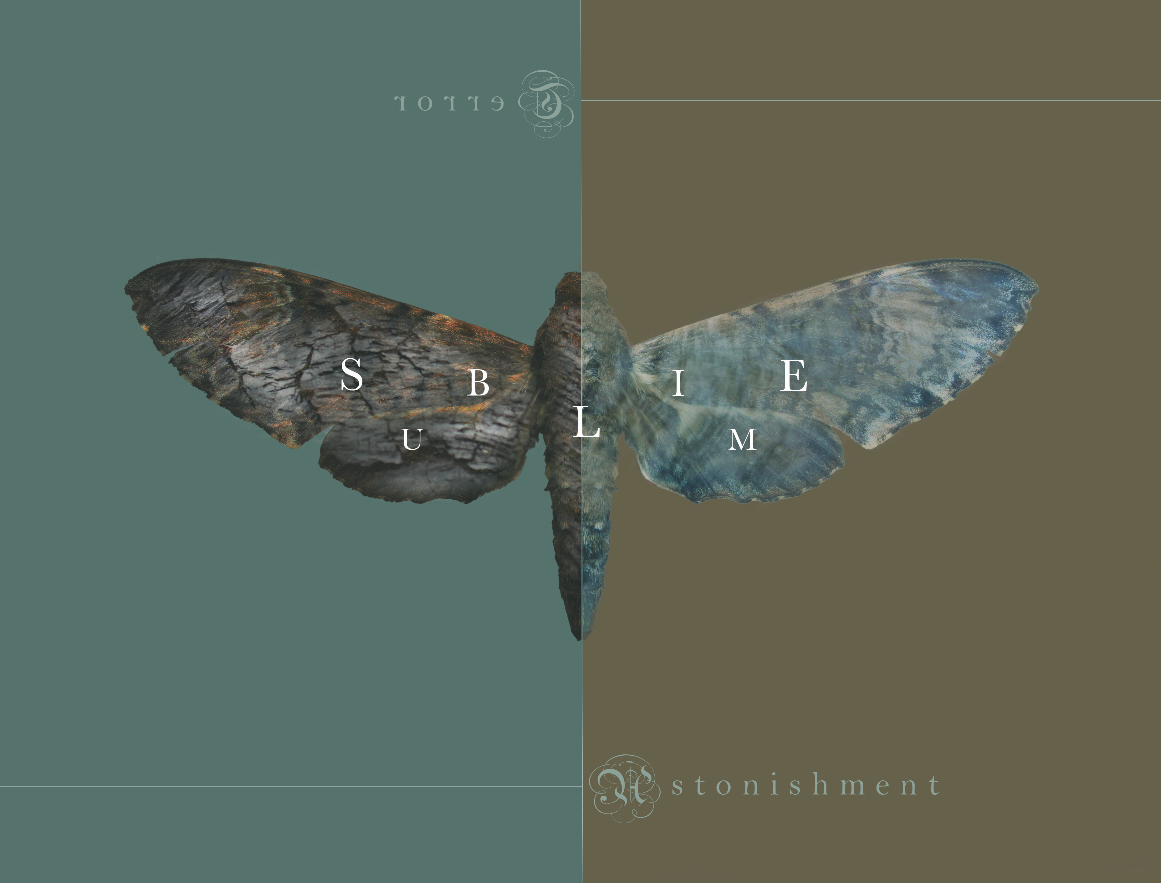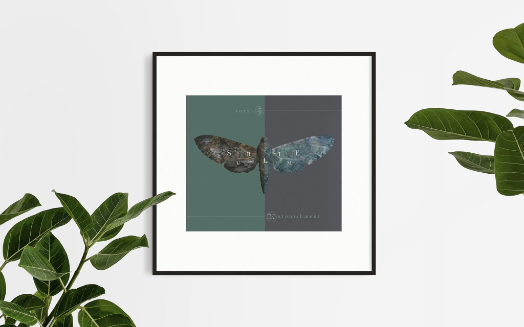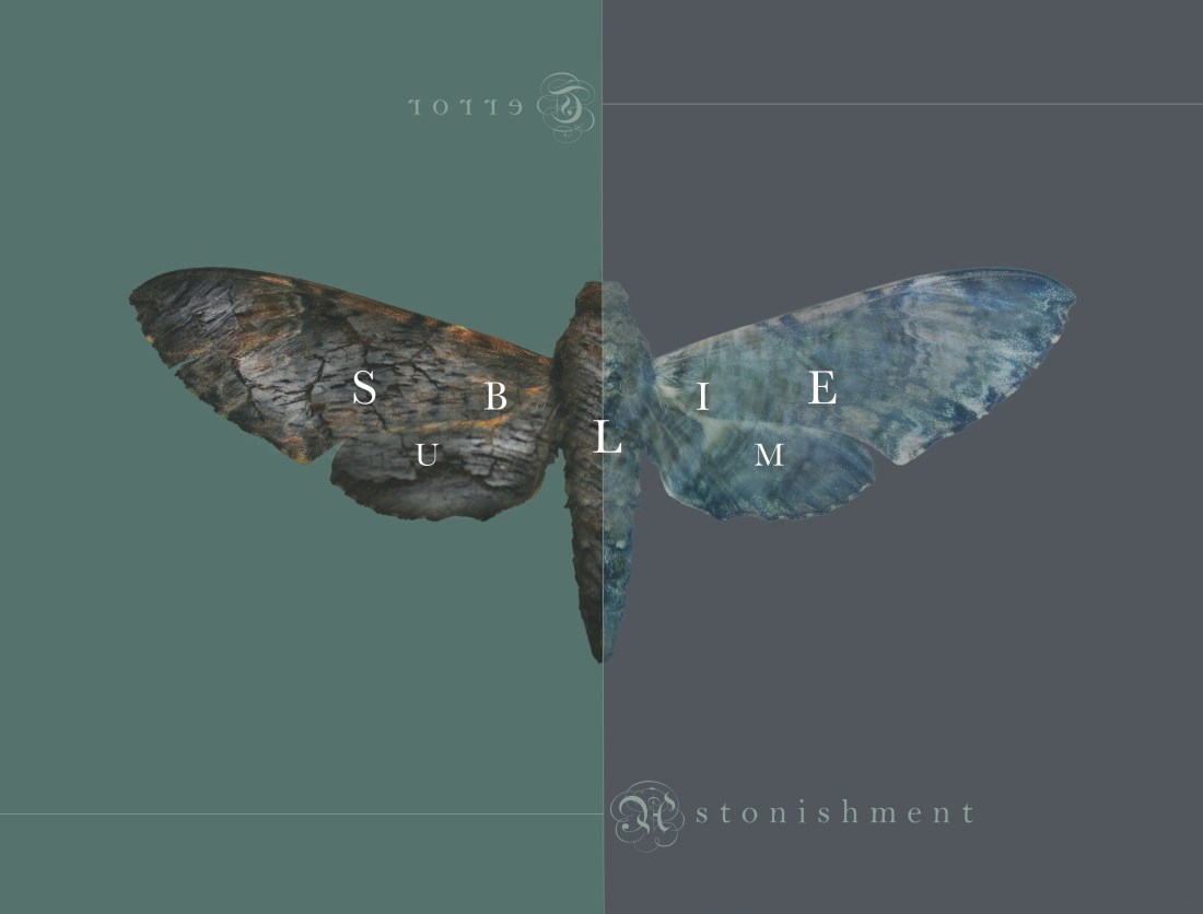 I was initially planning to experiment with this idea as a video, however I became engrossed by the process of digital photographic manipulation as the static outcome reminded me of the juxtaposed themes of freedom and constraint in Damien Hirst’s ‘The Incomplete Truth’. The use of traditional serif and black letter parchment typeface references the cultural, historical context of Burke’s published analysis of the sublime and its prevalence in gothic and romantic art and literature. I feel that the medium of photography and digital manipulation appropriately references the organic processes and textures of the visceral landscape whilst communicating my own sensory experience of it. Although this design works well as a stand alone illustration print, if I had more time I would like to explore how it could be developed into a video using masks and video taken from the Roaches.