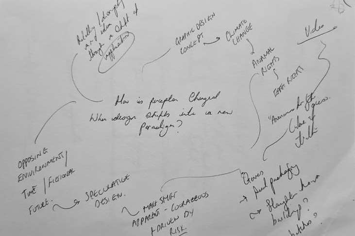 Transdisciplinary practice: Maziar and Susanna highlighted the evolution of traditional craft to multidisciplinary practice influenced by technological advances and cultural shifts. “Craft” however is understood by Maziar as the “depth of understanding of detail, tacit knowledge, not maintaining tradition”, linking to Simon Manchipps analogy of a historical painting’s enduring idea. Group projects offer a wide array of perspectives and critical thinking approaches to design which enable the challenging of conventions and subsequent creation of unique work. In alignment with the critical nature of the MA course, the cross disciplinary nature of contemporary design invites us to continually surveying and re-examining what graphic design is and how it functions across multiple contexts.