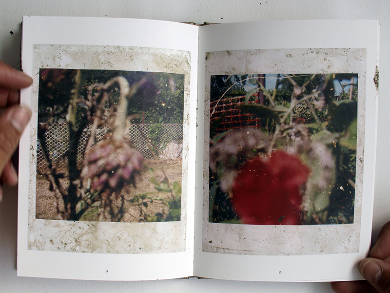 “The photographs in this book were taken in Hackney Wick and later buried there. The amount of time the images were left underground varied depending on the amount of rainfall. The depths that the pictures were buried at also varied, as did their positioning. Sometimes they were facing each other, sometimes back to back or sometimes buried singly. When burying my first batch of photographs, a passing man spotted me and asked what I was doing. Not only did I not want to give the location away of some of my buried pictures, but It just sounded a bit weird to say that I was burying photographs so replied that I was looking for newts. As soon as Id said that I looked down and saw a newt at my feet. Not knowing what an image would look like once it was dug up introduced an element of chance and surprise which I found appealing. This feeling of letting go and in a way collaborating with place allowing it also to work on putting the finishing touches to a picture felt fair. Maybe the spirit of the place can also make its mark.”