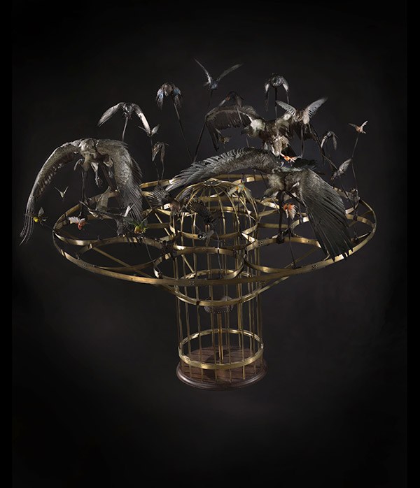Polly Morgan is a fine artist whose sculptural practice explores the medium of taxidermy to create challenging narratives by combining conceptualism and craft. Using only ethically sourced specimens, her work incorporates contemporary images and objects to explore a dynamic range of socially relevant topics, transcending ‘Victoriana’ associations of with taxidermy and its ornamental focus, which imitates the habitats of animals. Morgan uses the animal as a captivating, tangible symbol to convey ideas and create atmospheres or feelings such as humor, catharsis, dread, anxiety, the sublime, beauty and the uncanny.