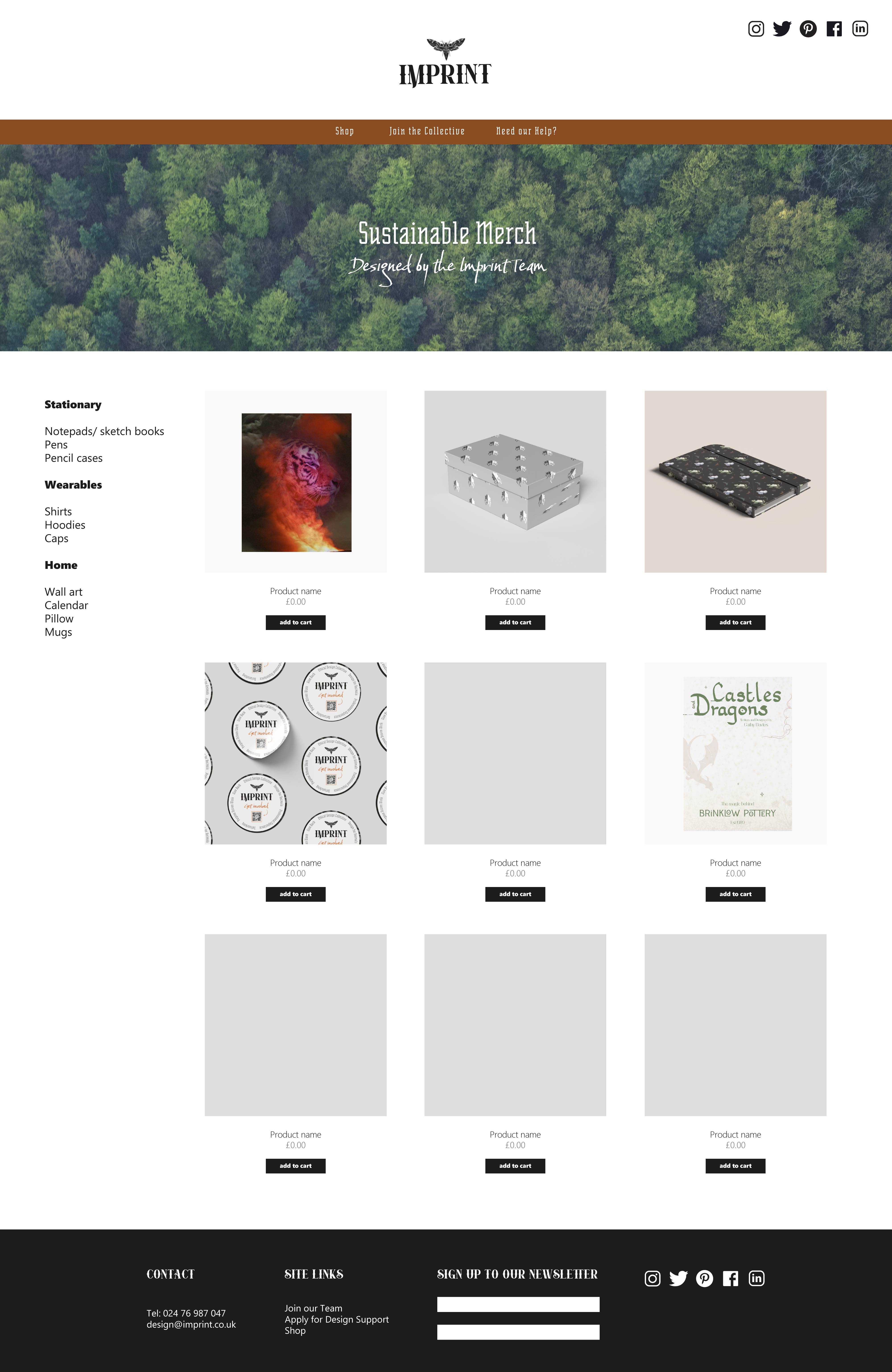 Being torn between focusing my project on the launch of the Imprint Collective, my own freelance practice, or my own practice under a creative business name, I decided to work on a web design strategy for Imprint to help me gauge how and where my personal practice could be positioned in its existence. Doing this helped me visualize how collaborators/volunteers could be featured on the website, acting as endorsers for the Imprint brand, making it necessary and appropriate for me to create both as part of my final project.